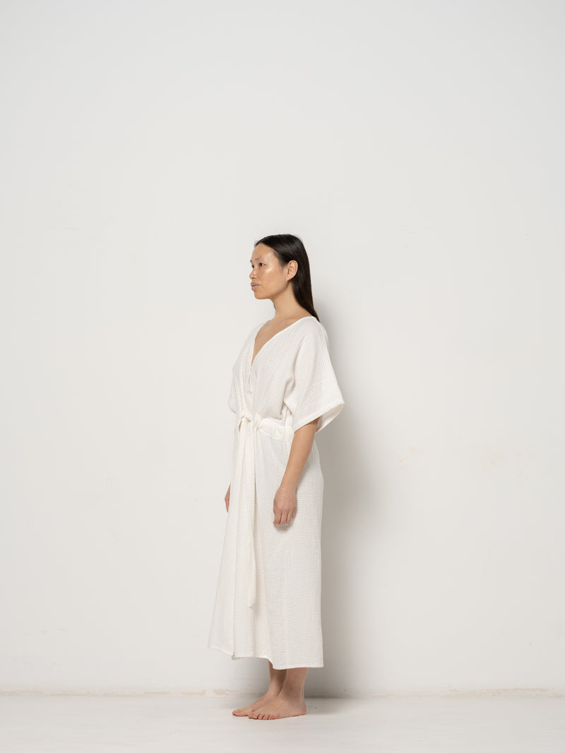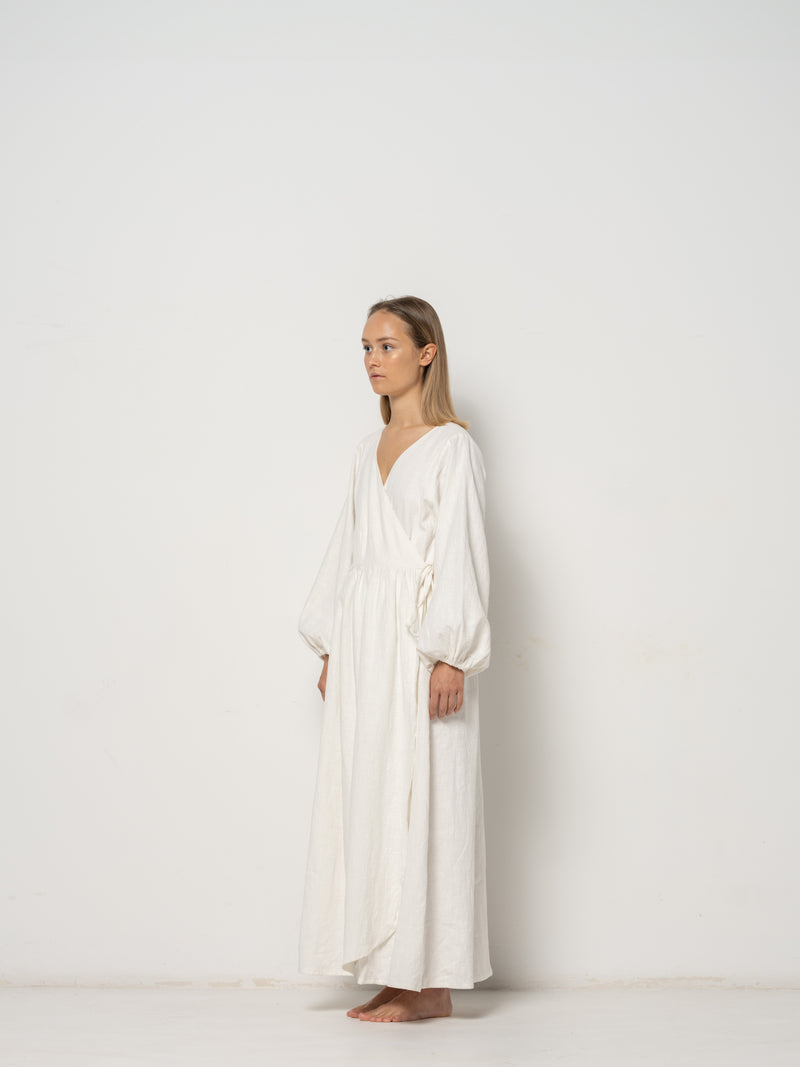 Ida Wrap Puffsleeve Dress - Natural Dye Hemp Organic Cotton