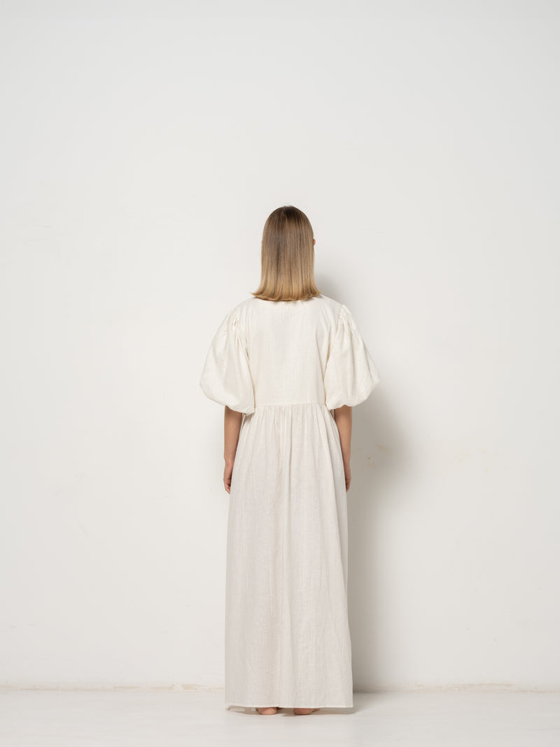 Amadea Longsleeve Dress - Natural Ramie Cotton