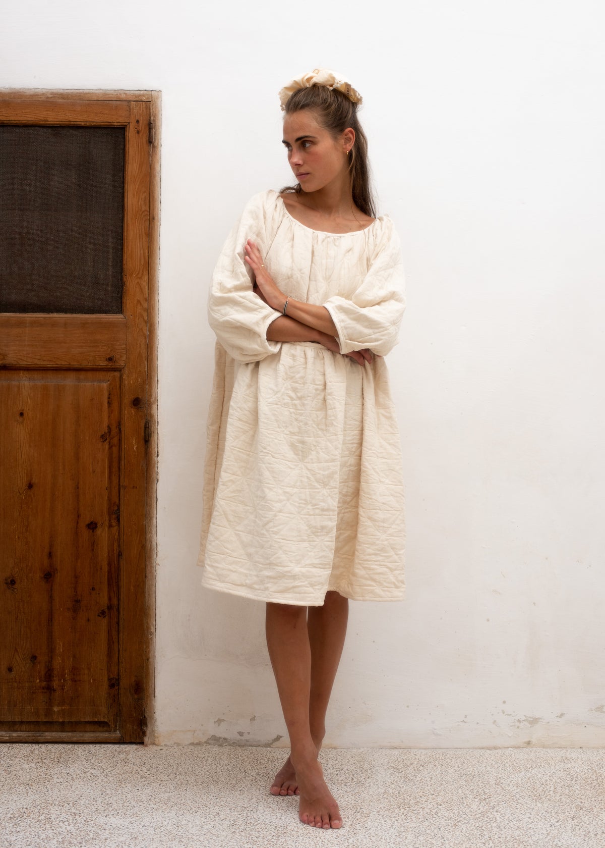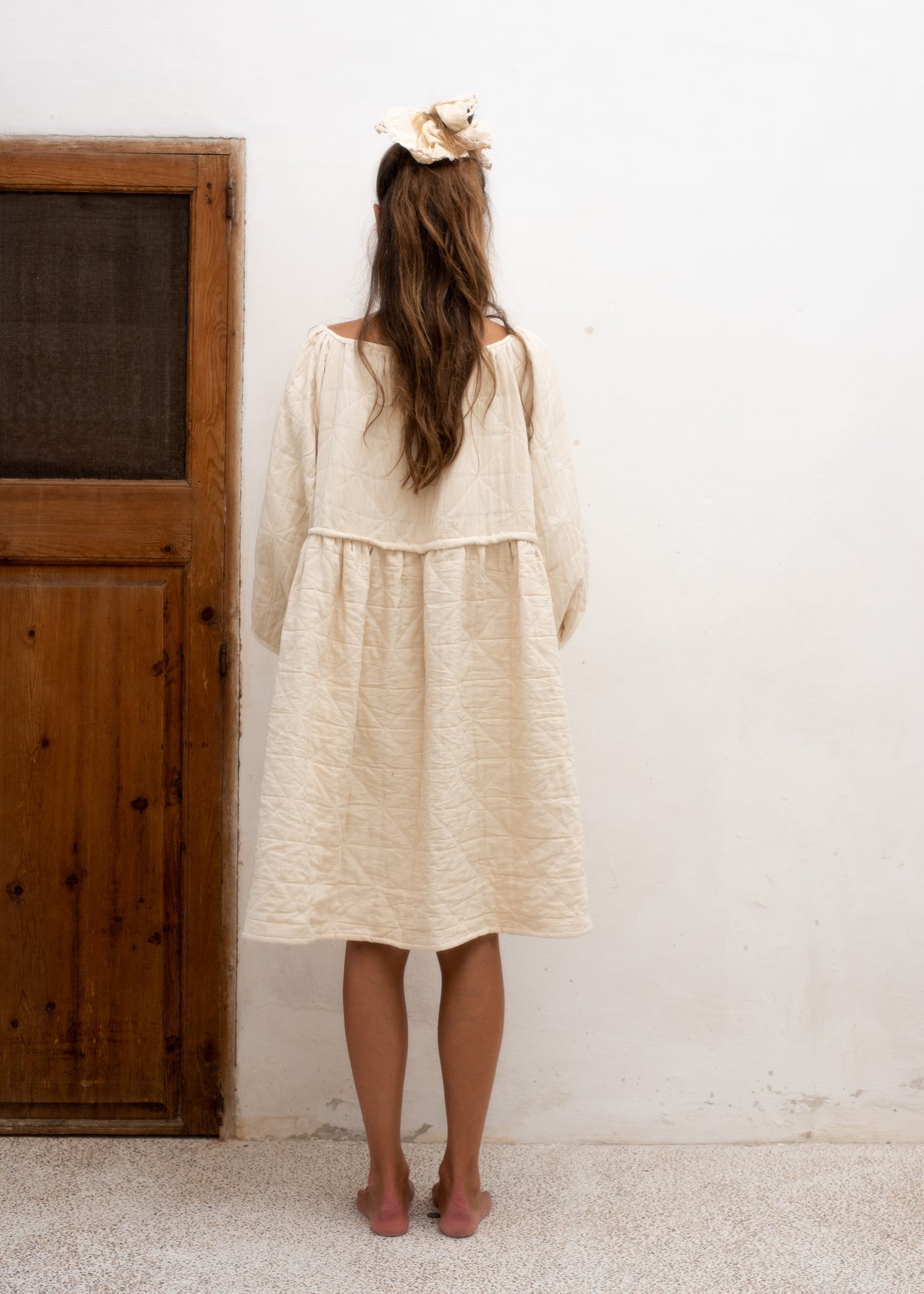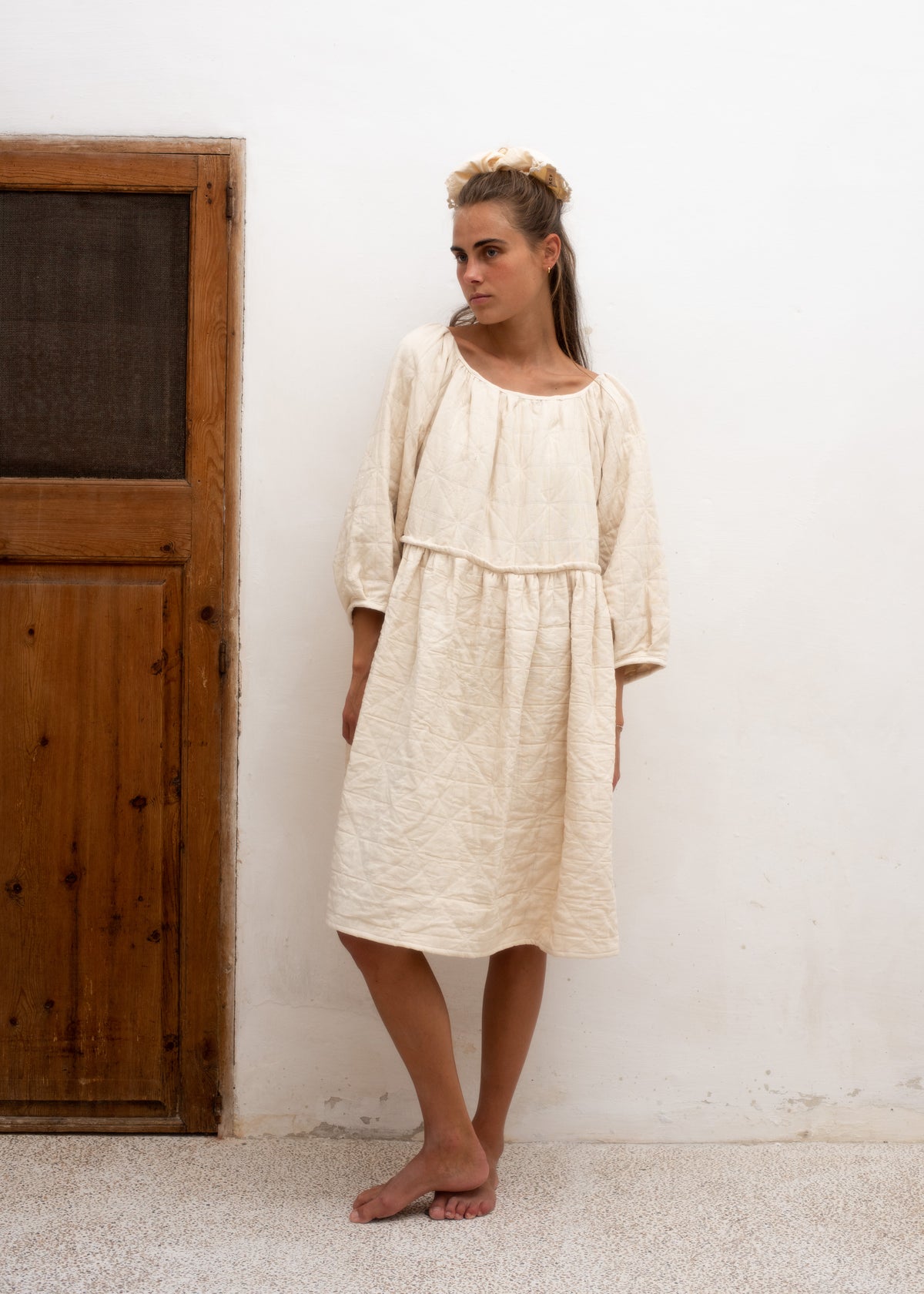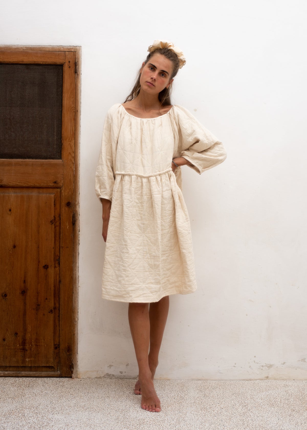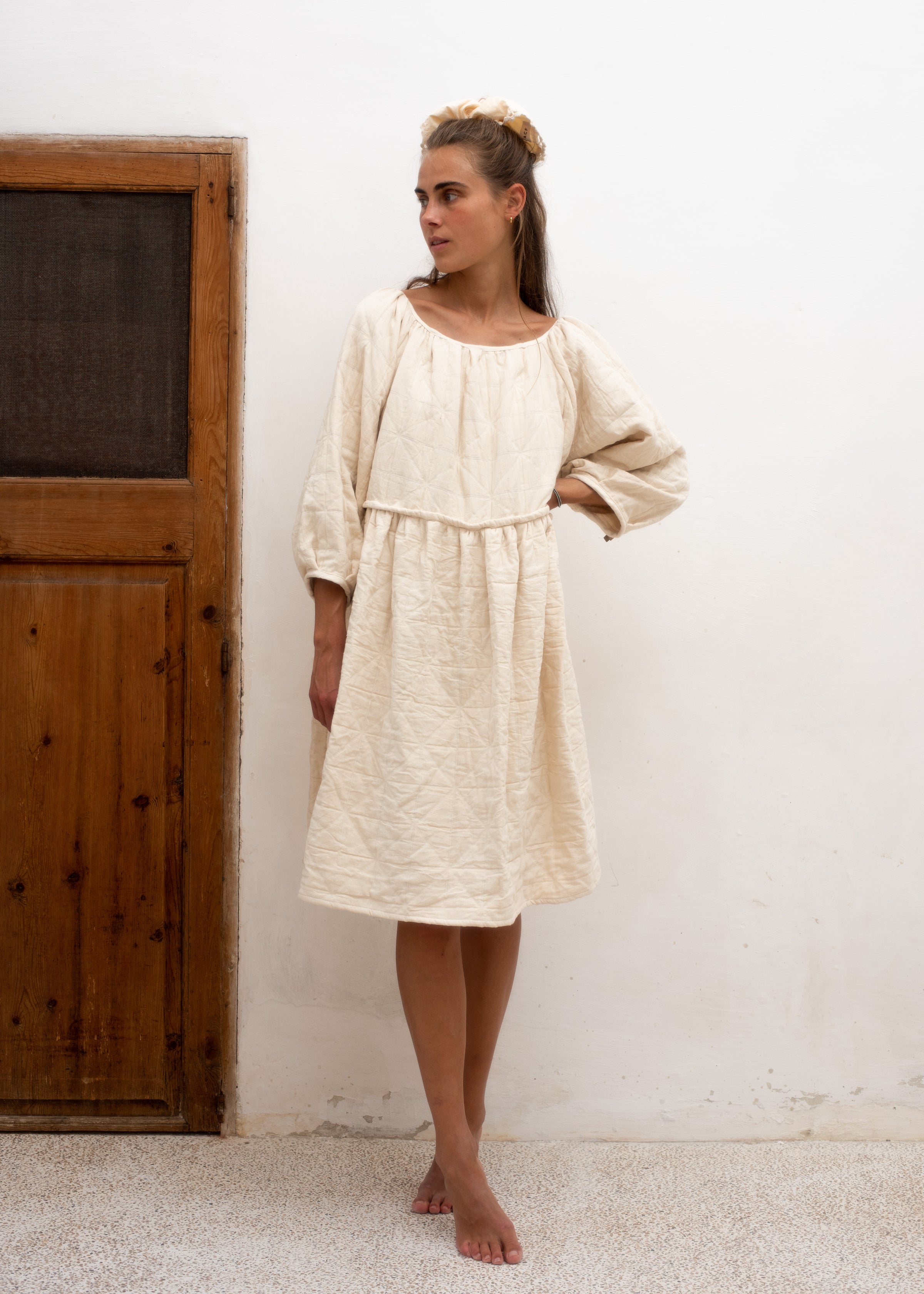 This dress, like the name reveals, has a soft baloon-y design, with its perfectly calculated neckline and its invisible elastic waist it draws out the cherished feminine figure.