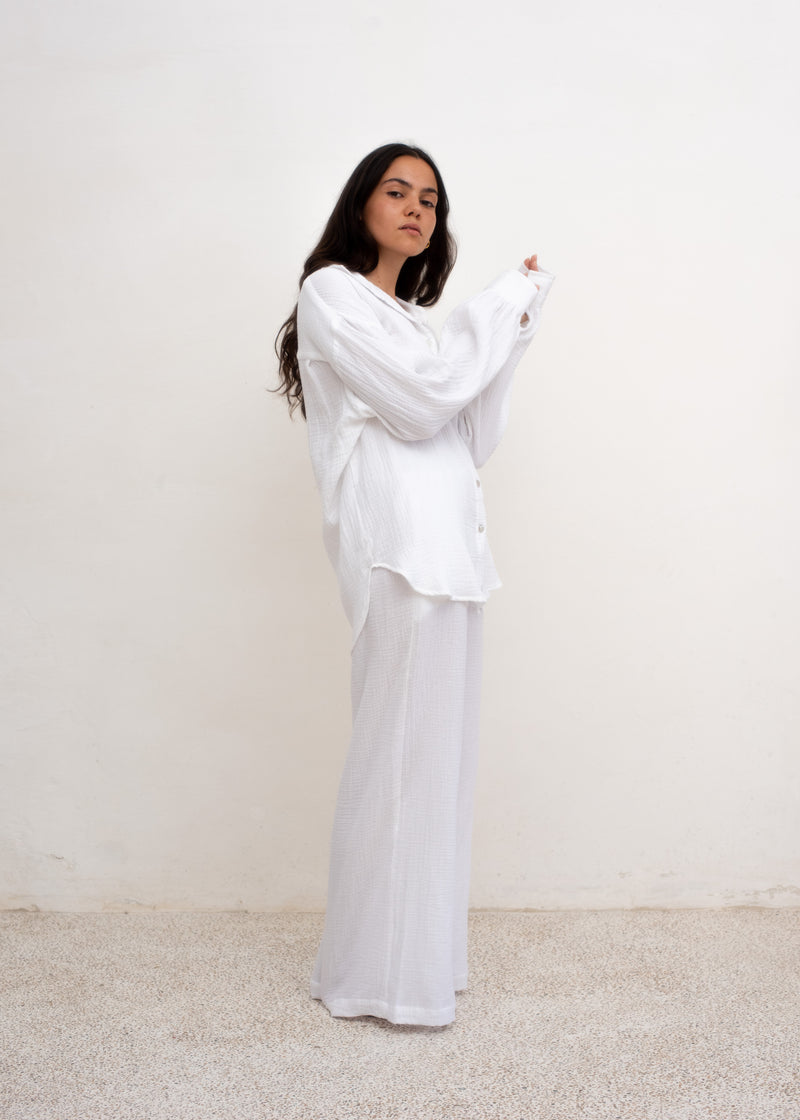 Lea Pants — White Cotton Gauze