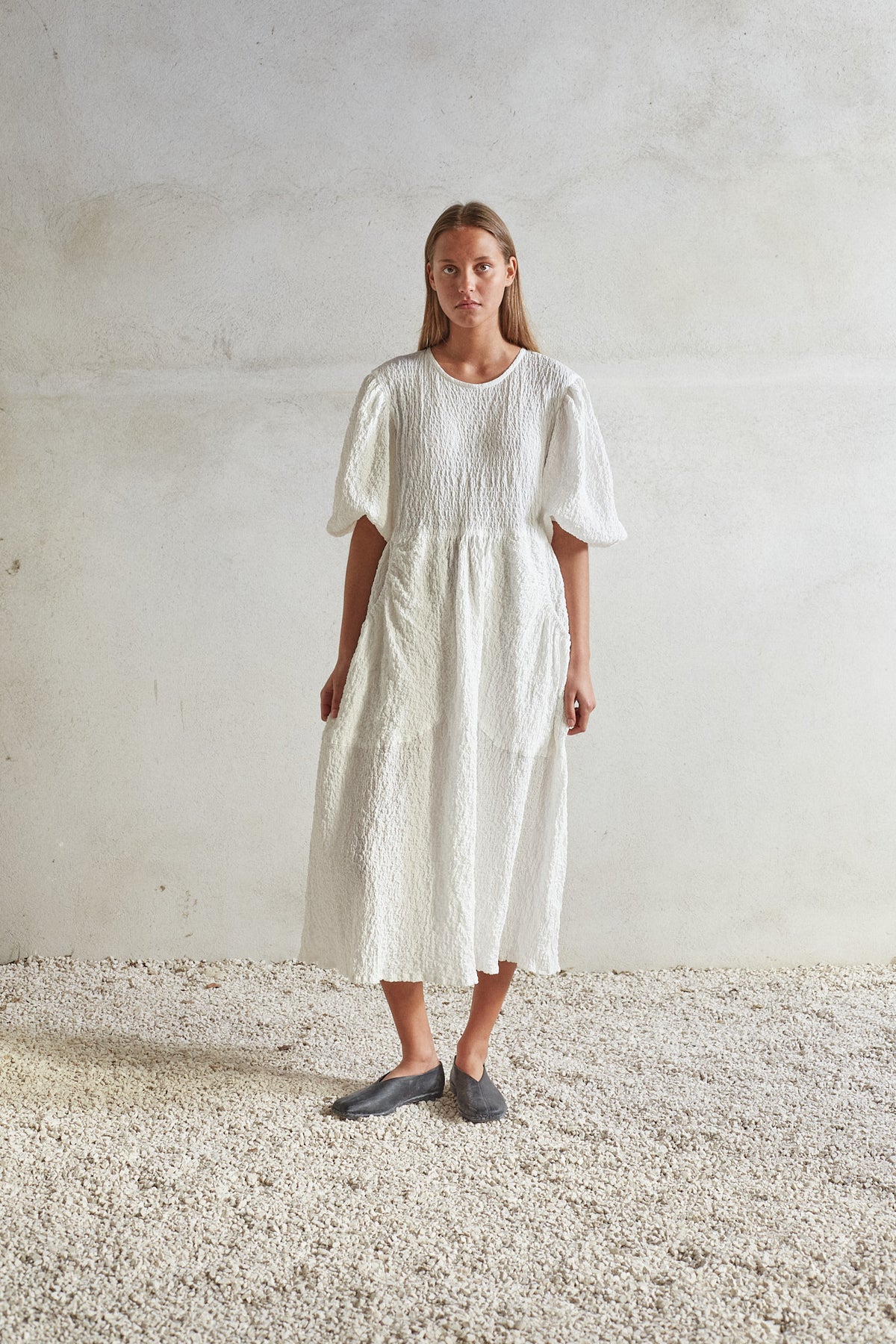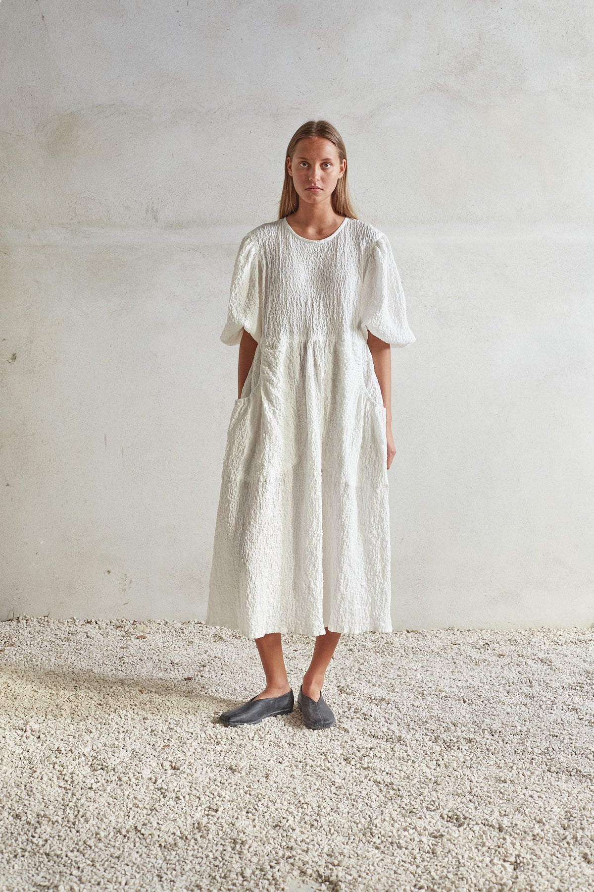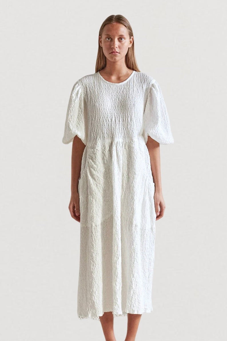 Effortless elegance with our Piano Dress in our signature fabric. With its pockets and loose puff sleeves, this A-line dress offers a unique feeling and fit.