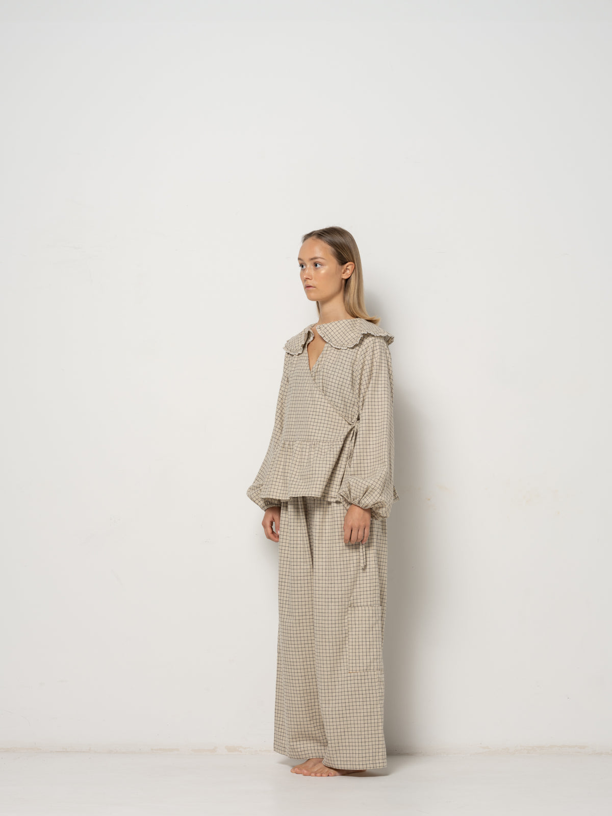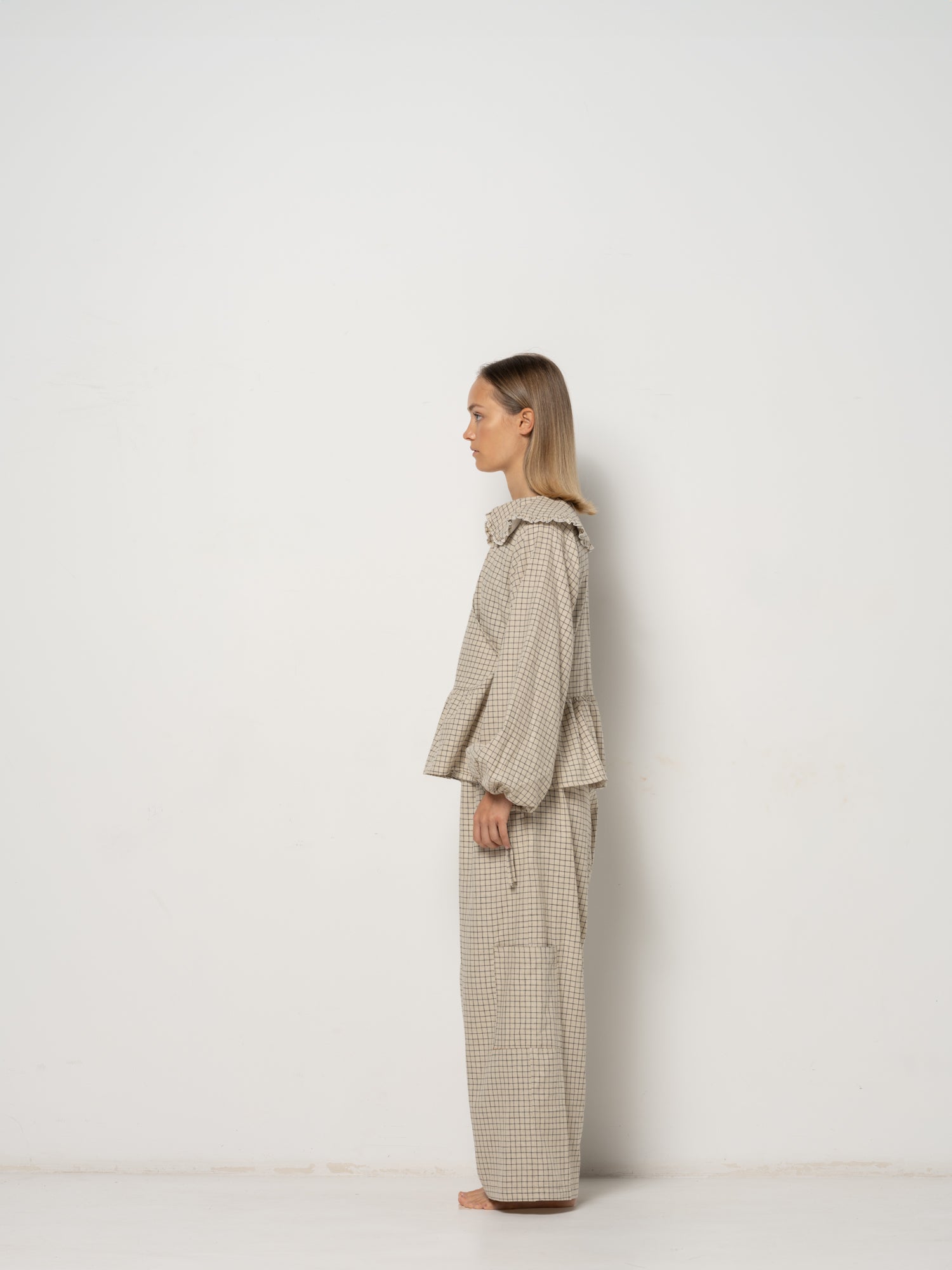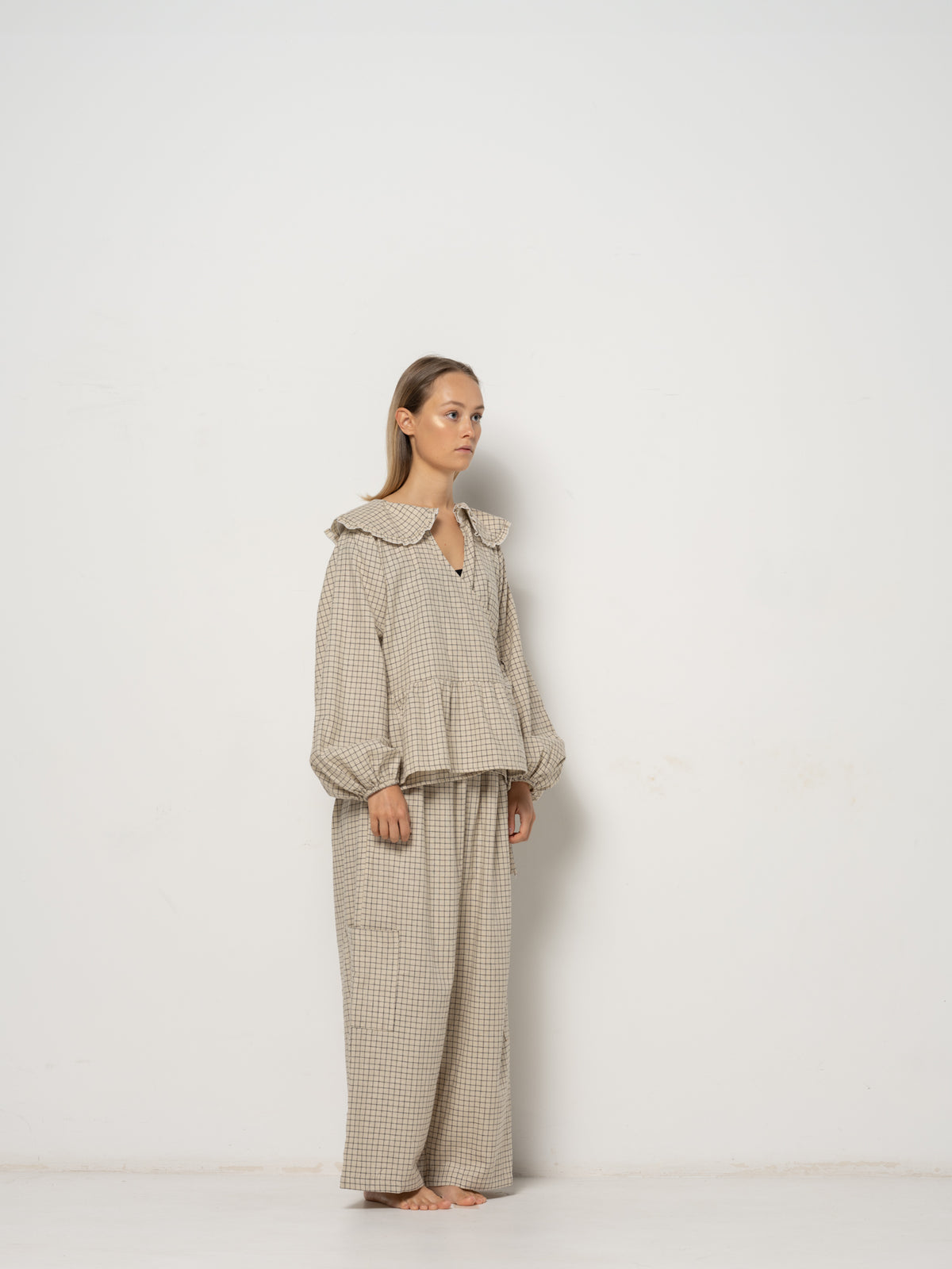 Ada Mini Collar Blouse - Checkered Hemp Organic Cotton Yarn