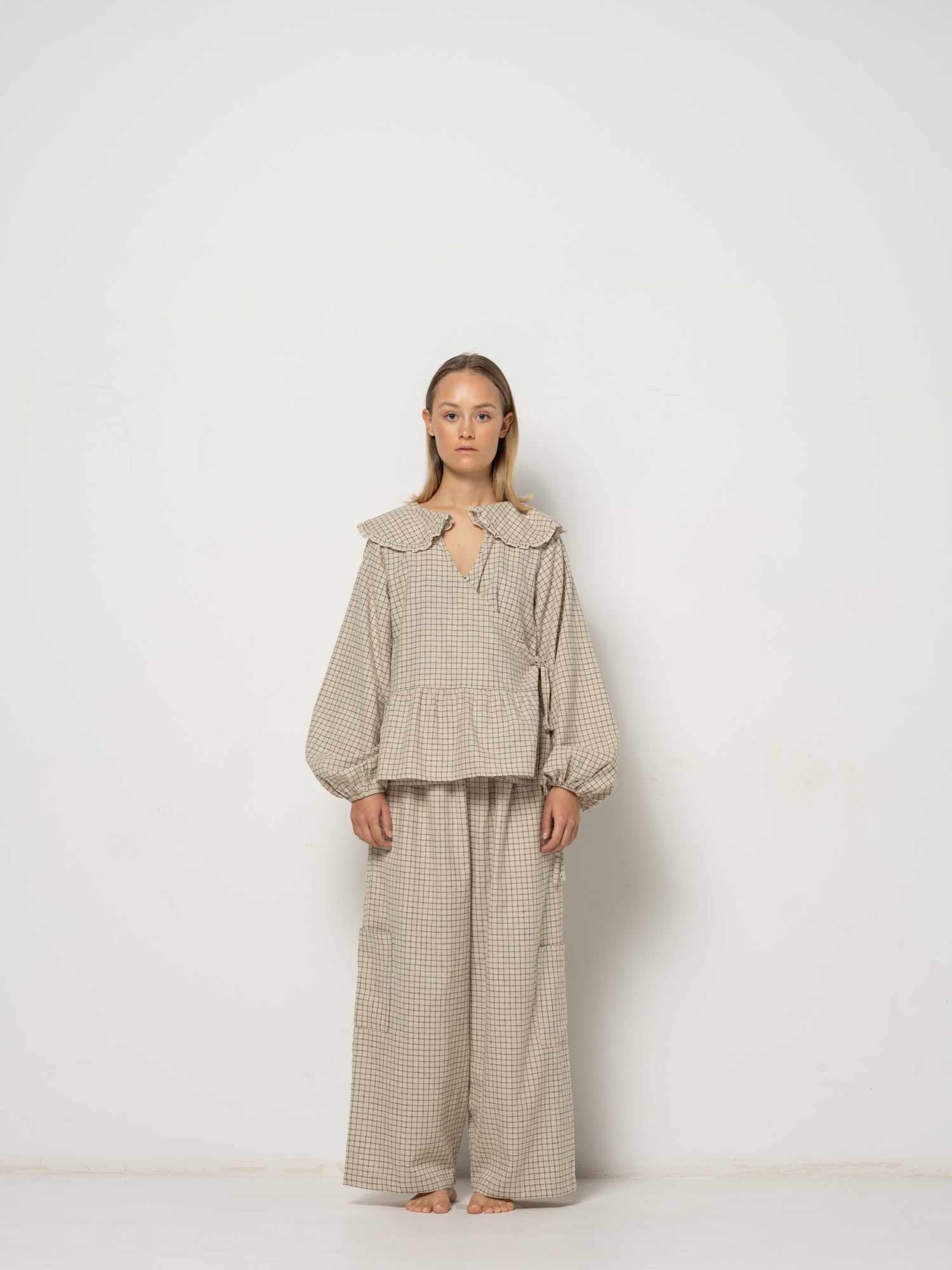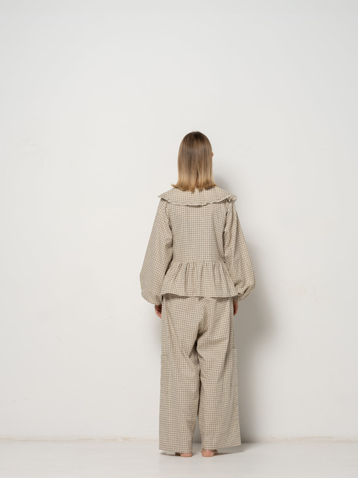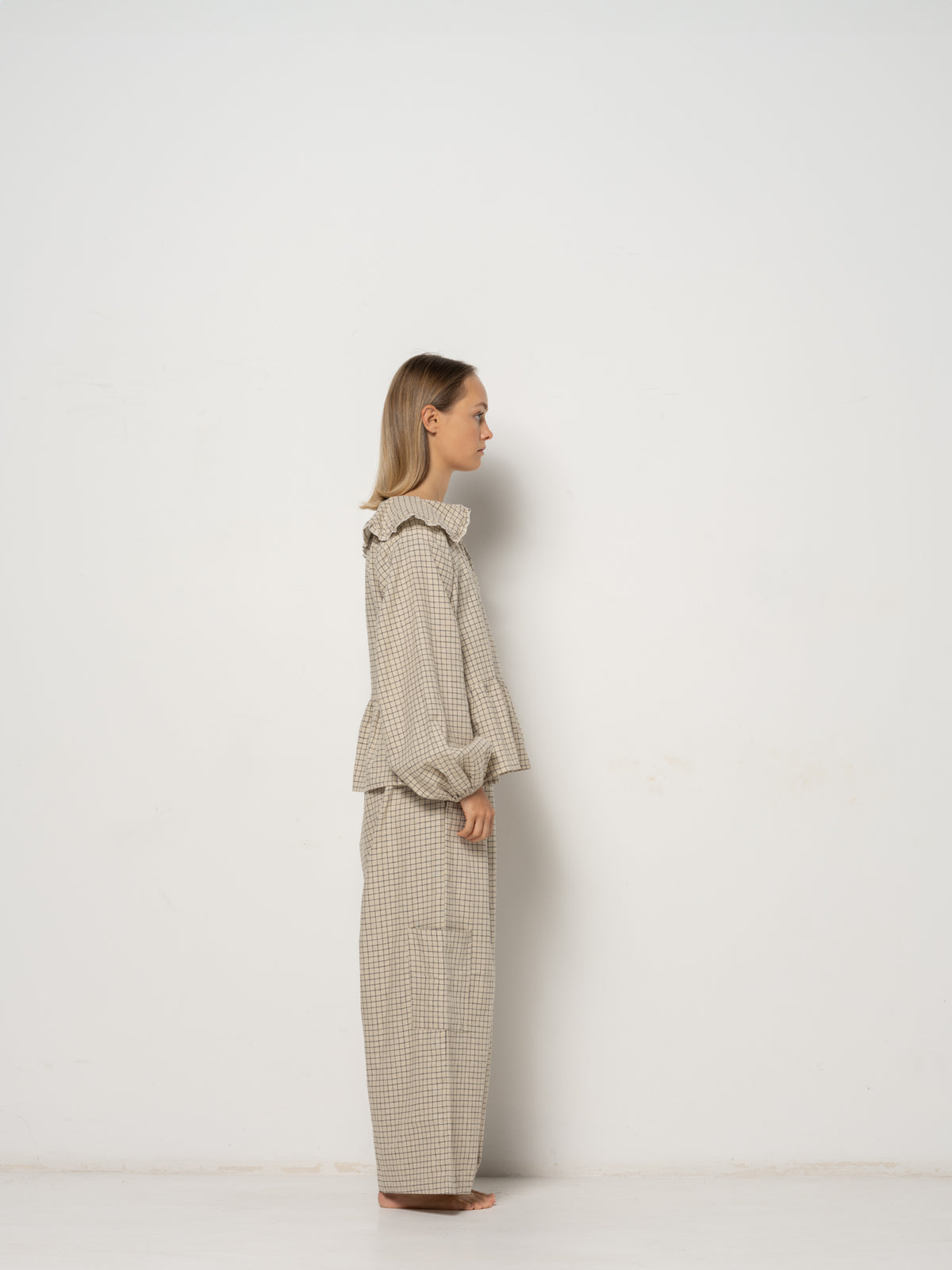 Ada Mini Collar Blouse - Checkered Hemp Organic Cotton Yarn