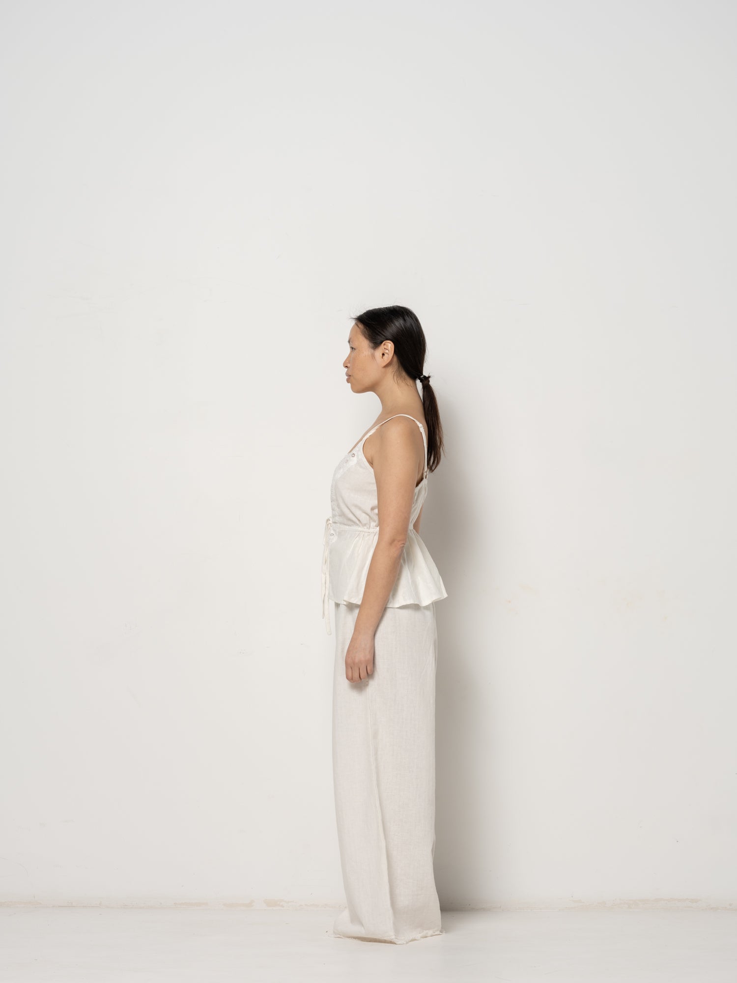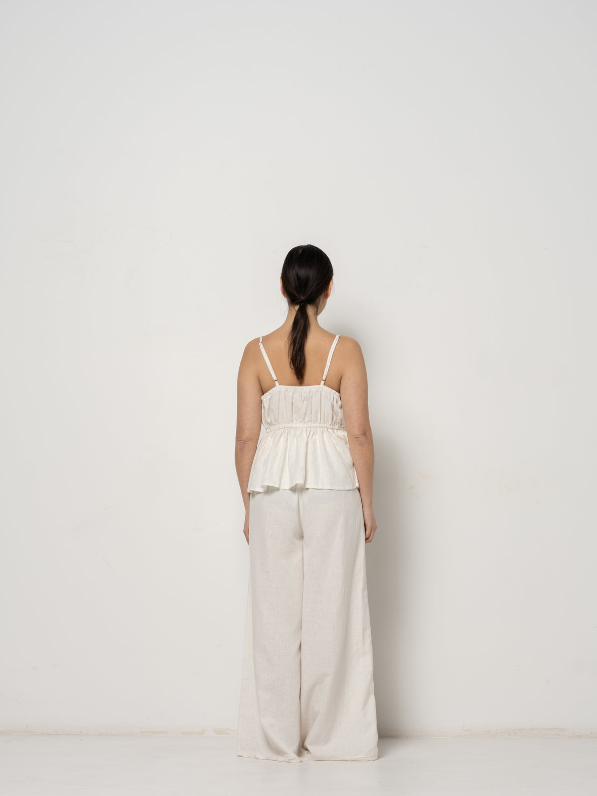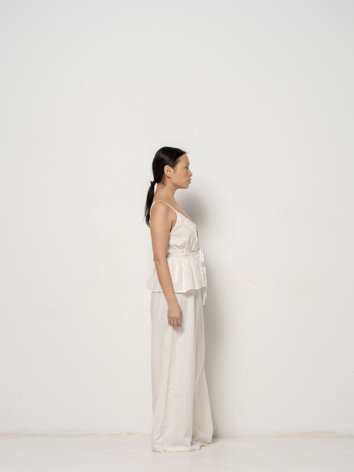 Introducing our Sjœl Top, a playful summer top made from Natural Dye Hemp and Organic Cotton. Featuring delicate flower details and an adjustable strap in the middle, this top combines beauty and functionality.