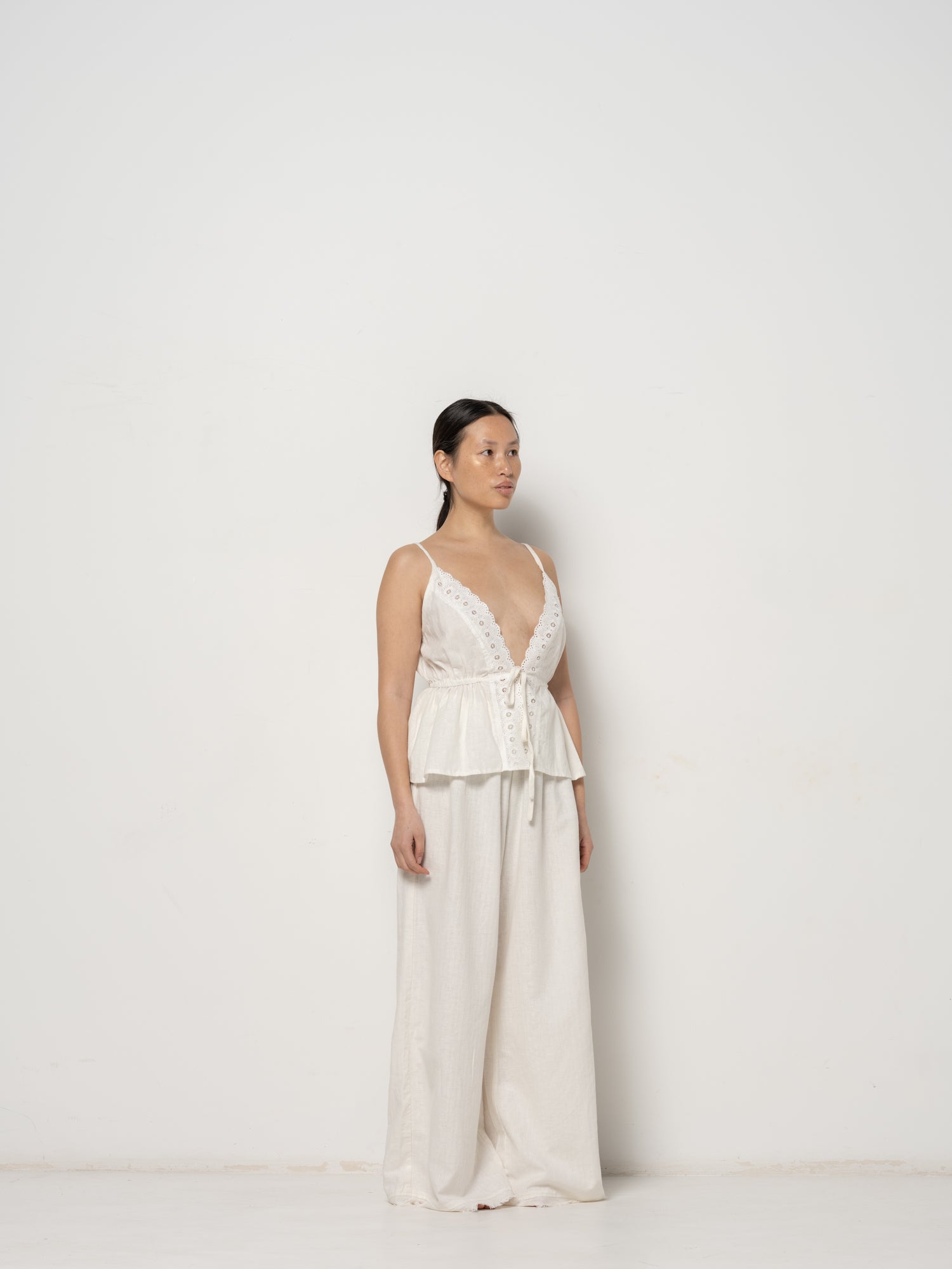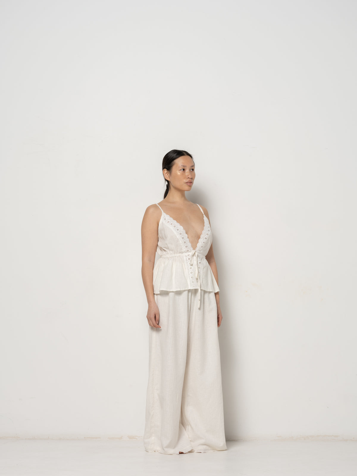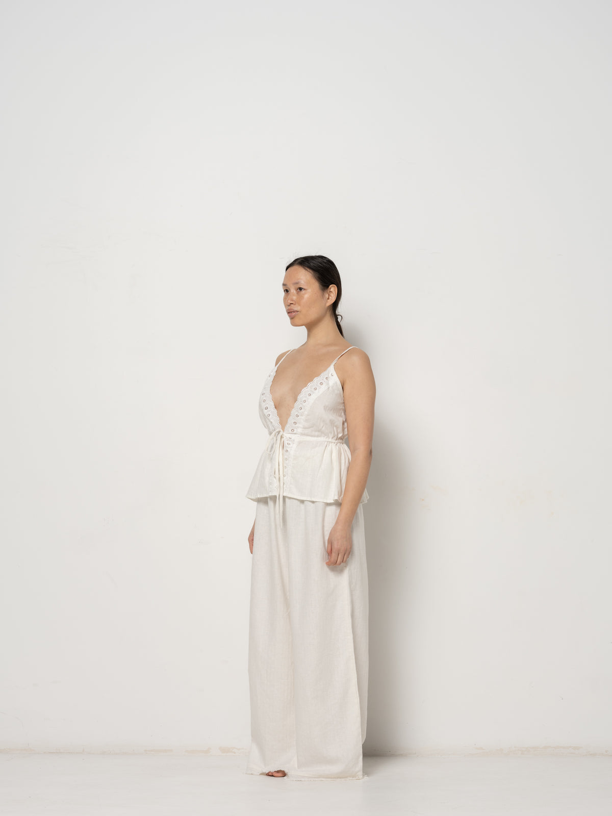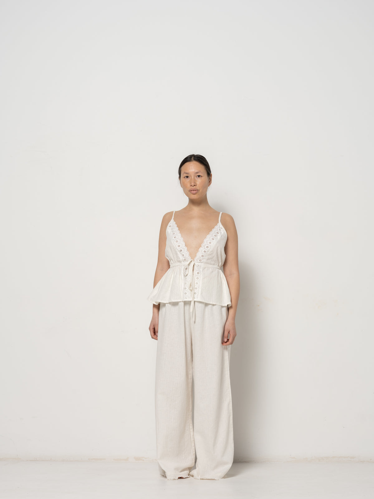 Introducing our Sjœl Top, a playful summer top made from Natural Dye Hemp and Organic Cotton. Featuring delicate flower details and an adjustable strap in the middle, this top combines beauty and functionality.
