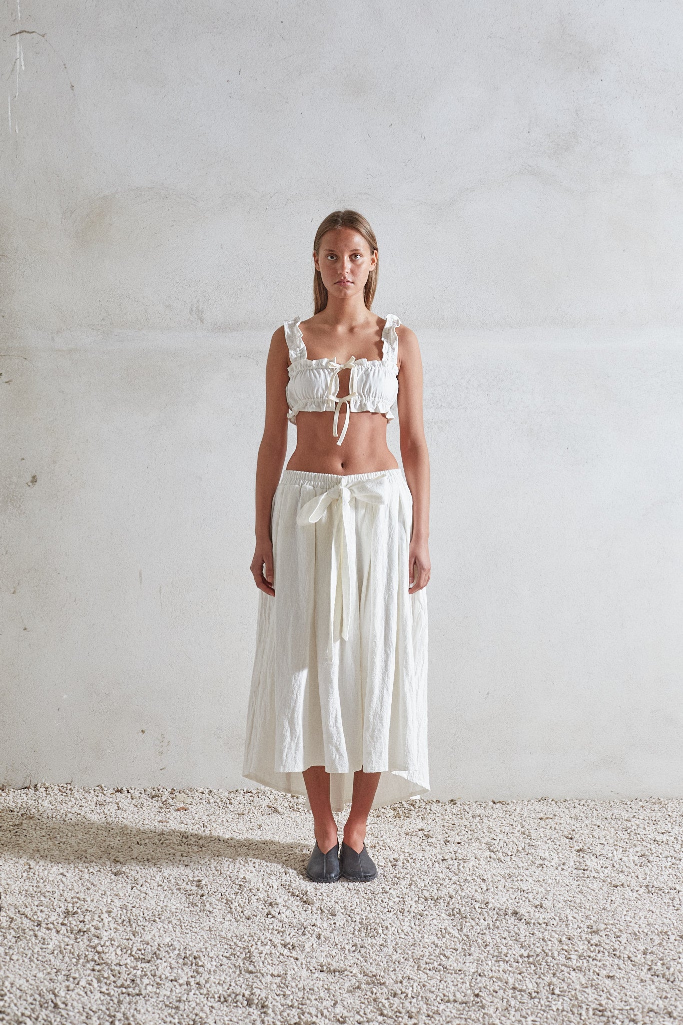 A delicate, feminine top with soft ruffles that add a touch of charm to a summer outfit. Its simple yet graceful design pairs beautifully with many pieces, it remains a favorite for its easy elegance.